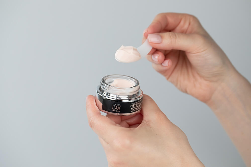 RVBLAB Meso Fill Build Up & Shape Gravity Defying Anti-Wrinkle Eye Cream to antygrawitacyjny krem na okolice oczu, który intensywnie ujędrnia, wygładza i modeluje delikatną skórę wokół oczu. Formuła produktu została opracowana tak, aby redukując oznaki starzenia, zapobiegać opadaniu skóry i poprawiać kontur oka, pozostawiając spojrzenie bardziej otwarte i wypoczęte. Krem szybko się wchłania, nie pozostawiając tłustego filmu, i jest odpowiedni do codziennej pielęgnacji.