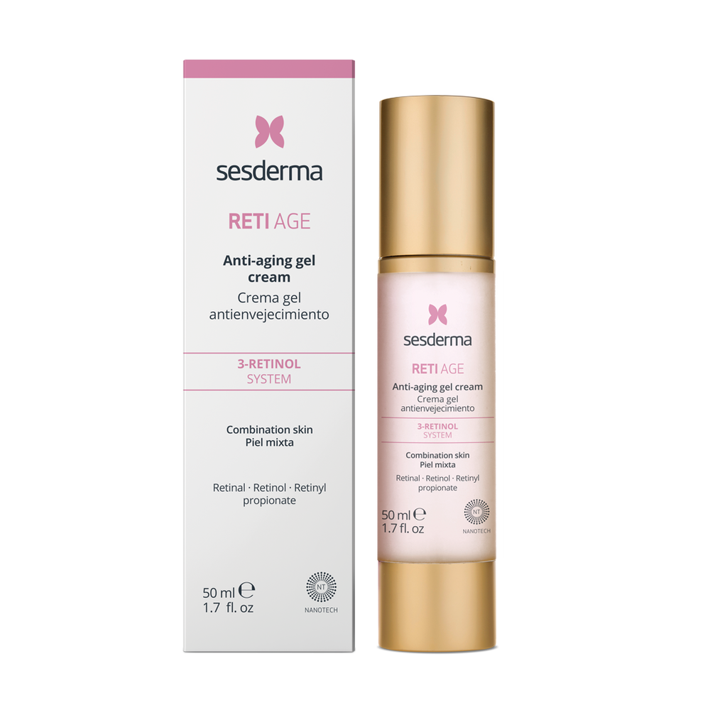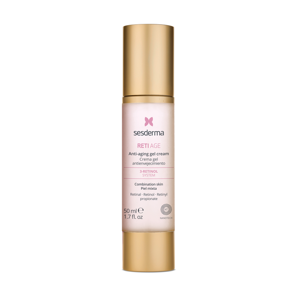 Retiage Anti-Aging Cream-Gel marki Sesderma to innowacyjny krem-żel przeciwstarzeniowy, stworzony z myślą o skórze dojrzałej, wymagającej intensywnej regeneracji, wygładzenia zmarszczek i poprawy jędrności. Formuła oparta jest na retinoidach, które stymulują odnowę komórkową, wspierają produkcję kolagenu i elastyny oraz redukują widoczność linii mimicznych i zmarszczek.