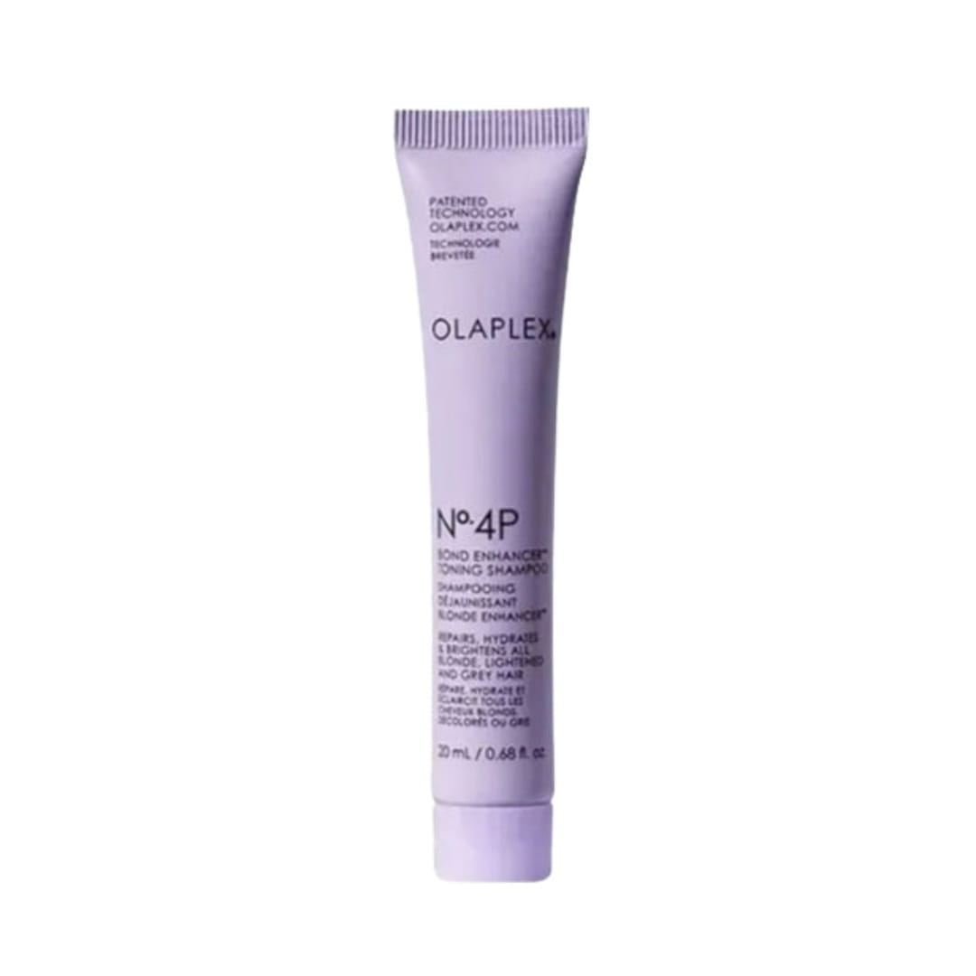 OLAPLEX No.4P Blonde Enhancer Toning Shampoo to oczyszczający i tonujący szampon stworzony z myślą o włosach blond, rozjaśnianych, siwych i z pasemkami. Dzięki fioletowym pigmentom o wysokim stężeniu skutecznie neutralizuje żółte i miedziane odcienie, nadając włosom chłodny, świetlisty ton.