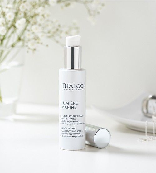 BRIGHTENING CORRECTING SERUM od THALGO to skoncentrowane serum rozjaśniające i korygujące przebarwienia, które zapewnia skórze równomierny koloryt, świeżość i promienny wygląd. Opracowane w oparciu o kompleks Lumière Marine z ekstraktem z brązowych alg morskich, niacynamidem i witaminą C, działa wielopoziomowo – redukuje istniejące plamy pigmentacyjne, zapobiega ich nawrotom i nadaje cerze świetlisty blask.